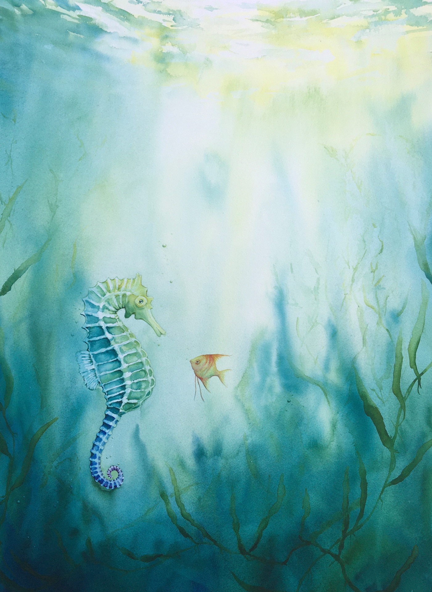 Akvarell inramad i 50x50 vit ram.4900 kr