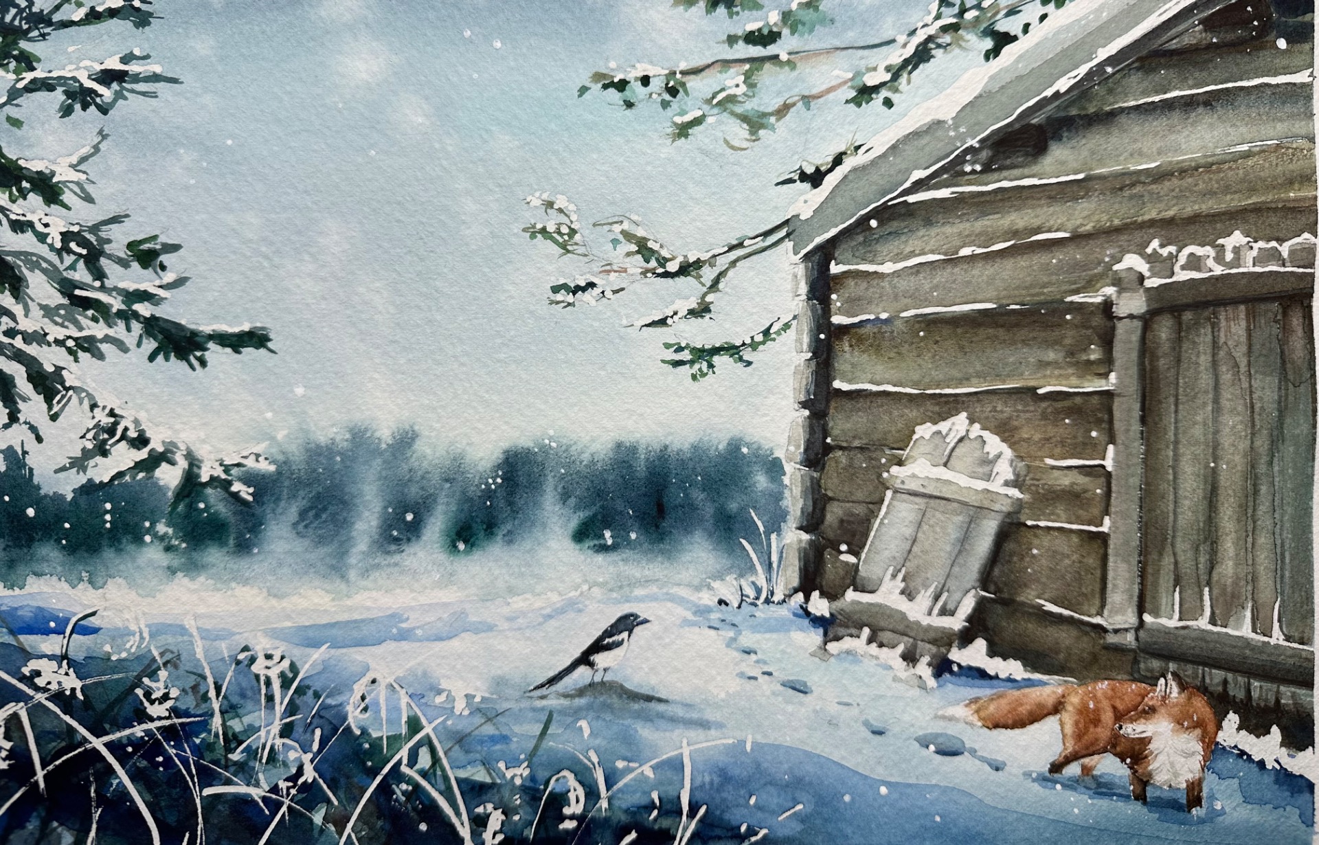 Akvarell 20x30 cm. Inramad i vit ram 30x40 cm.